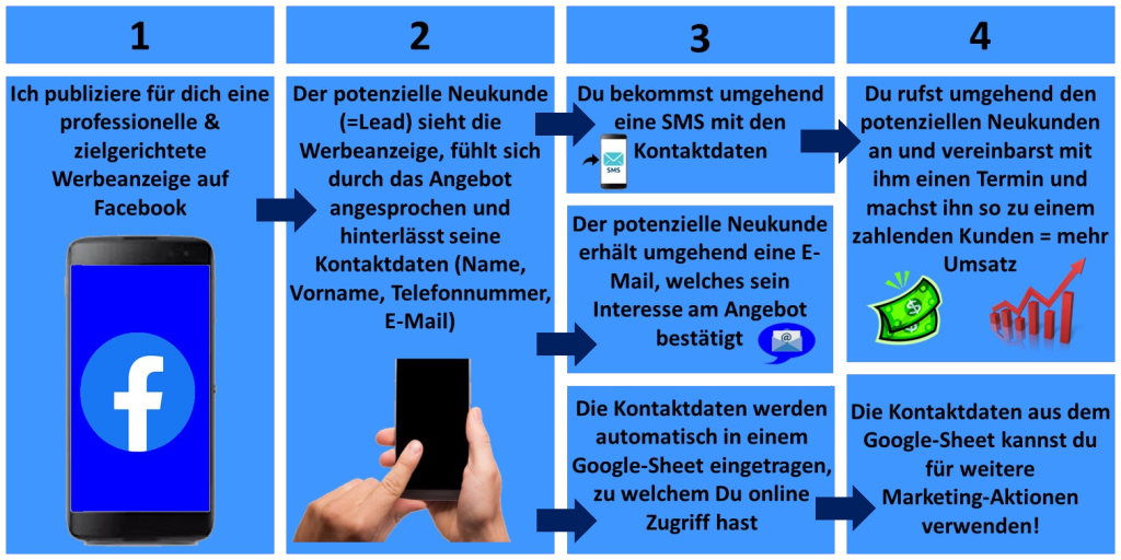 - Bei mir handelt es sich um ein komplettes Paket (Strategieentwicklung, Verkaufsgespräch-Analyse, Video Schnitt, Wording, Splittest, Überwachung und Optimierung der Anzeige, Leitfaden für Telefonat und SMS etc.) und nicht nur, um das Aufsetzen und Ausstrahlen einer Werbeanzeige.